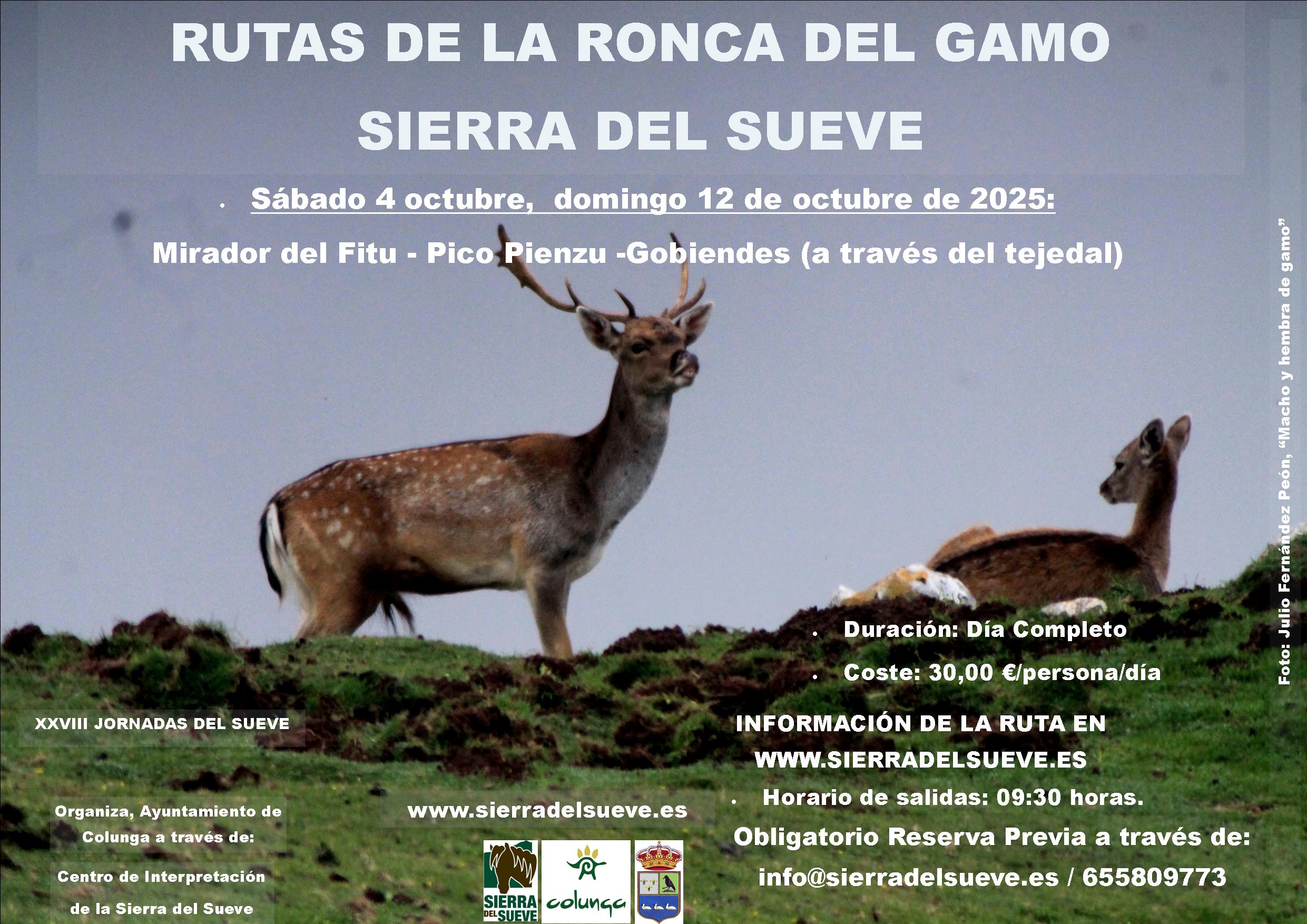 - Reservas: Hasta las 14:00 horas del Viernes 10 de octubre teléfono 655 80 97 73 o mail info@sierradelsueve.es